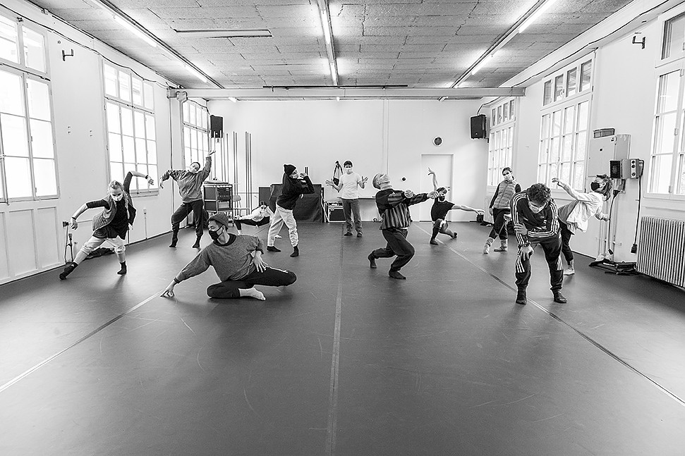 In these uncertain times, the dancers are especially happy to be able to work again! They rehearse together in the studios of the Residenzzentrum tanz+ and live together in the guest house. All participating artists get tested twice a week and comply with the Corona measures.